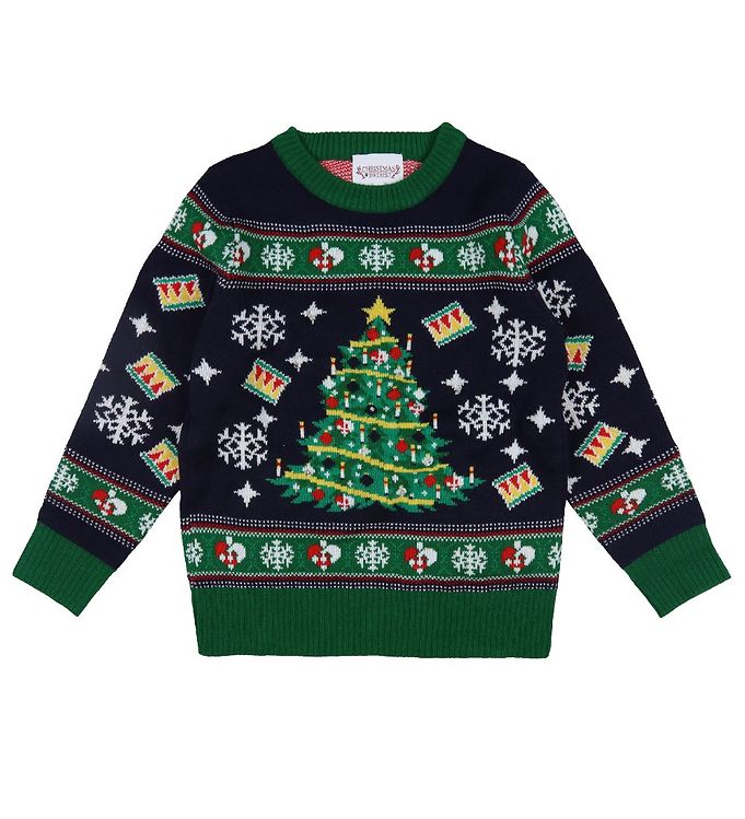 Jule-Sweaters Bluse - Christmas Tree - Strik - Navy/Grøn
