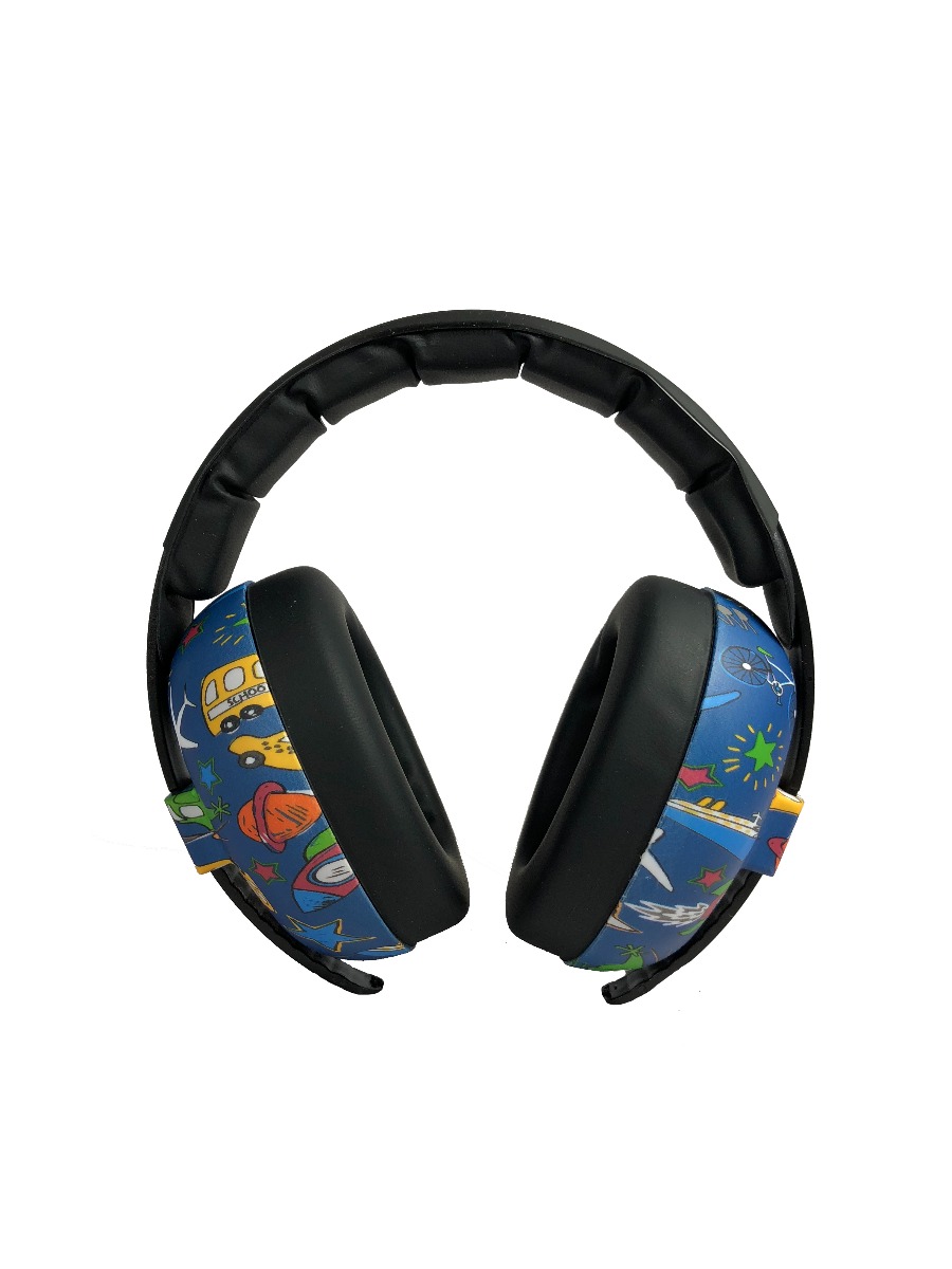 Dette sjove høreværn med transportmønster er perfekt til små køretøjsentusiaster. Specielt designet til babyer fra 0-3 år kombinerer det markedets bedste kvalitet med et legende design.