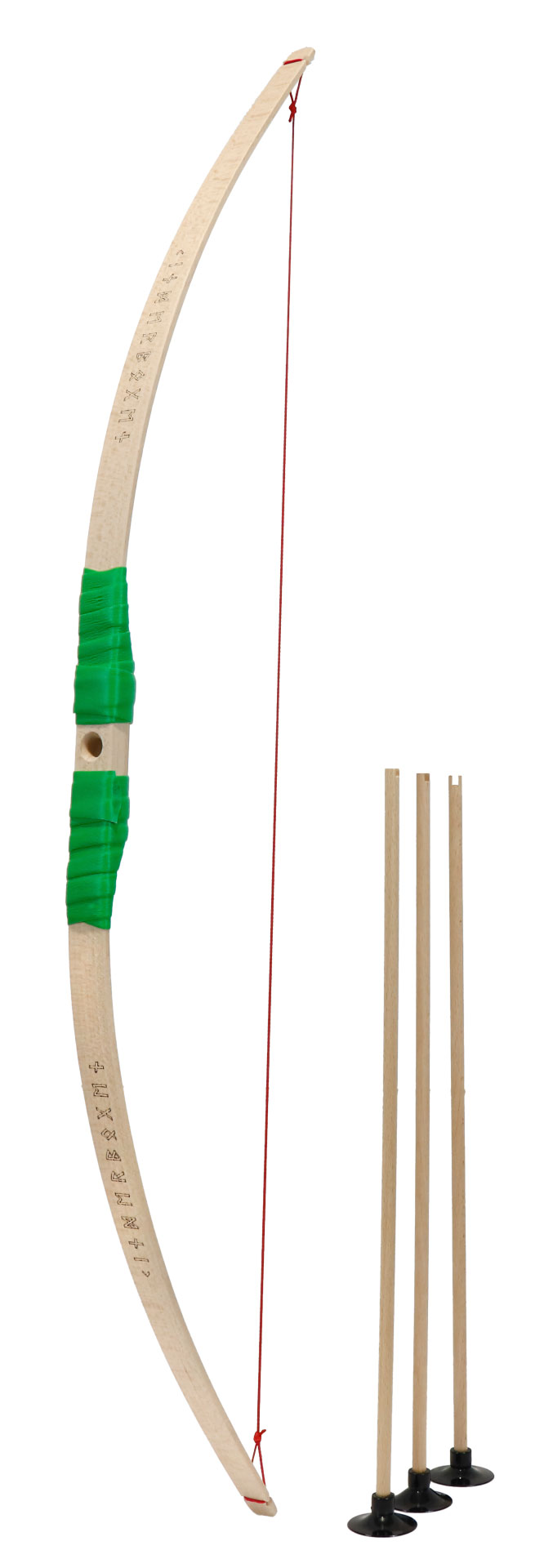Børnebue i bøgetræ med hul og lasergravering – farvet greb + 3 træpile Denne smukke børnebue fra BestSaller er det perfekte begyndersæt til unge bueskytter. Buen er fremstillet af robust bøgetræ med en længde på 80 cm og har et elegant farvet greb i