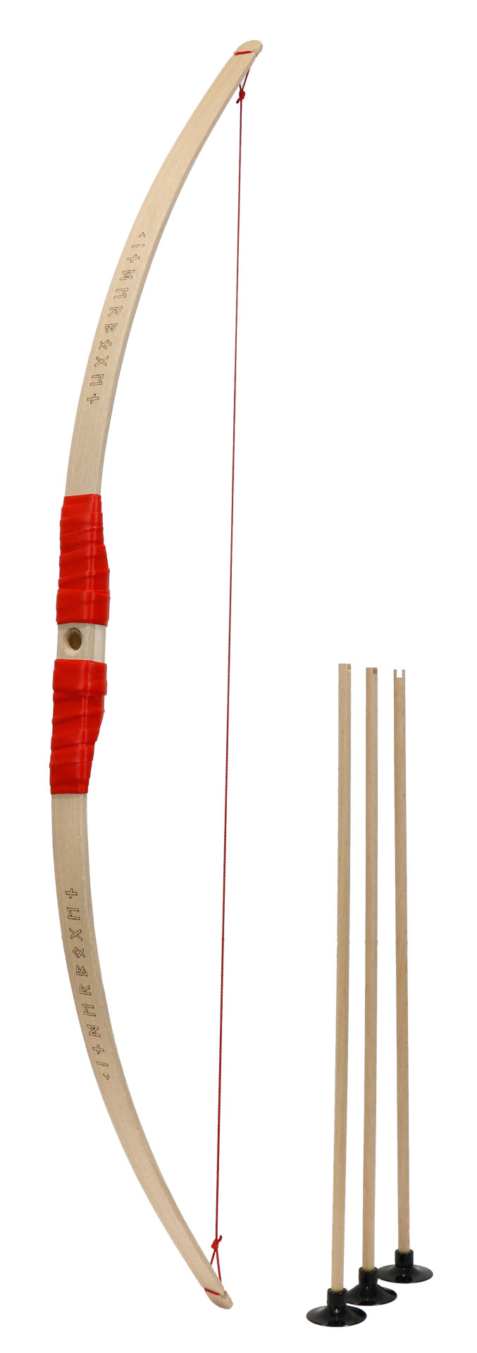 Børnebue af bøgetræ rødt greb + 3 pile