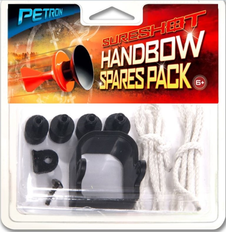 Petron Sureshot Handbow Spares Pack Including: - 2 strings / 4 retaining toggles - 1 front sight - 1 fixing bracket and screw