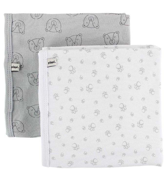 Pippi Tæppe - 70x70 - 2-pak - Hvid/Lysegrå m. Bjørne/Fodspor