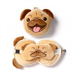 Relaxeazzz Mopps Pug Plush Travel Pillow & Eye Mask - Nakkepude