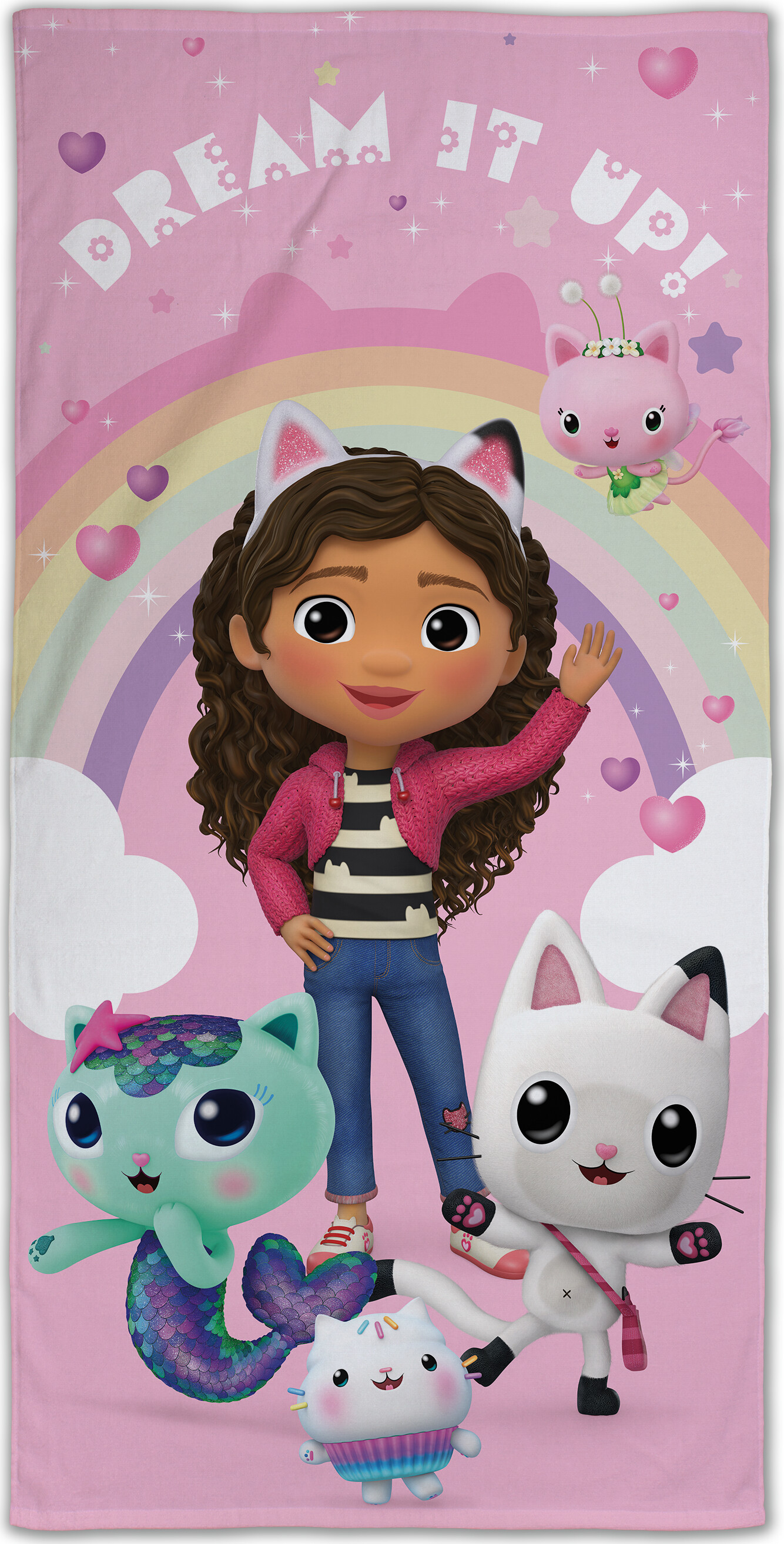 Gabbys Dollhouse Håndklæde i størrelsen 70x140 cm er det perfekte valg til dit barn. Dette håndklæde kombinerer høj kvalitet med et farverigt og livligt design, der vil glæde enhver lille fan af Gabbys Dollhouse. Det bløde materiale sikrer, at dit barn vil føle sig komfortabelt og varmt efter badet eller en sjov dag ved stranden.