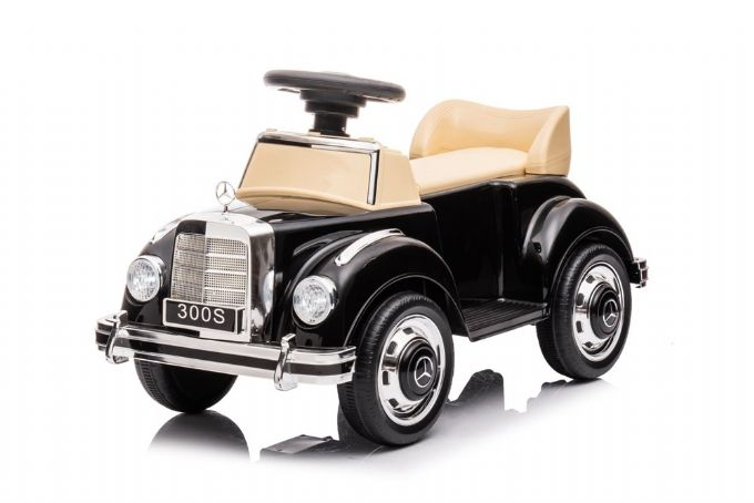 Den retro Mercedes 300S er lavet på licens af Daimler, fantastisk flot udført med sans for detaljer. Tryk på start knappen og den seje motorlyd starter. Der er fede musiknumre indlagt, som barnet kan lytte til under kørslen. Selvfølgelig, som en eks