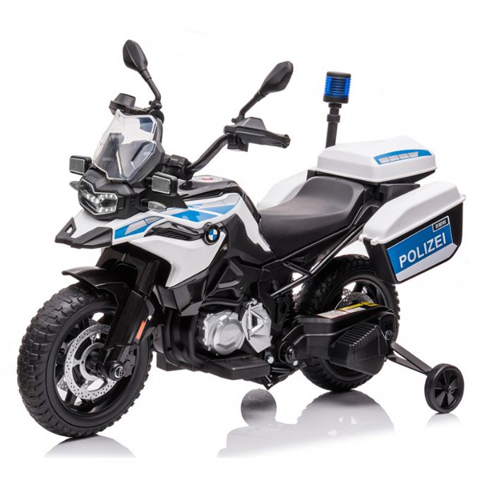 Den rigtige licenseret BMW F850 GS politi motorcykel med rigtige gummihjul. Denne seje motorcykel er lavet på licens af BMW, så der er kræset om detaljerne, bl.a. med lyde som en rigtig politi motorcykel. Motorcyklen er monteret med støttefod og der
