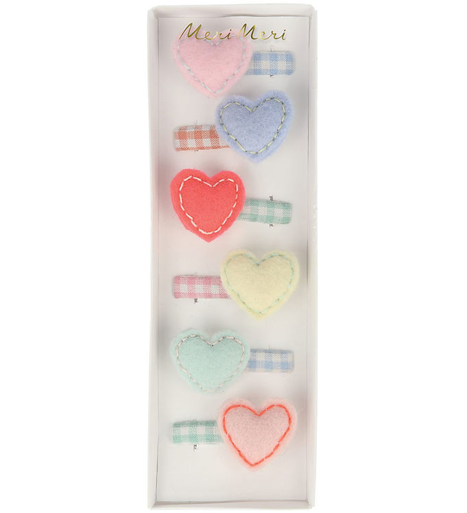 Meri Meri Hårspænder - 6-pak - Filt - 3,5 cm - Hjerter