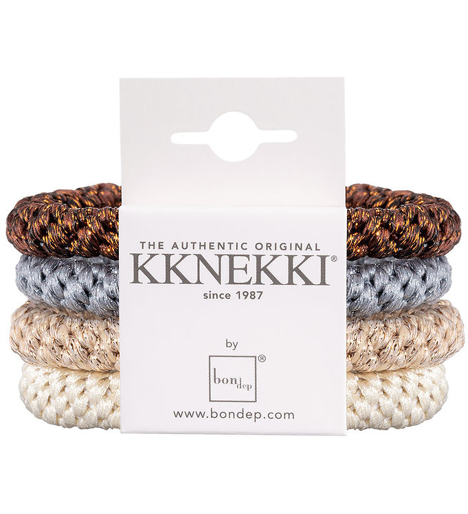 Kknekki Hårelastikker - 4-pak - Beige/Blå/Brun/Glimmer