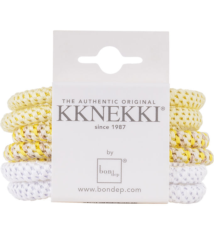 Kknekki Hårelastikker - Slim - 6-pak - Gul/Hvid