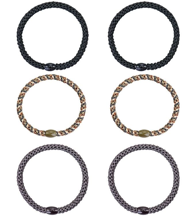 Kknekki Hårelastikker - 6-Pak - Slim - Sort/Grå/Glimmer