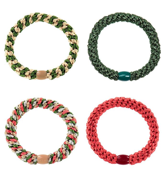 Kknekki Hårelastikker - 4-pak - Grøn/Glimmer/Rød