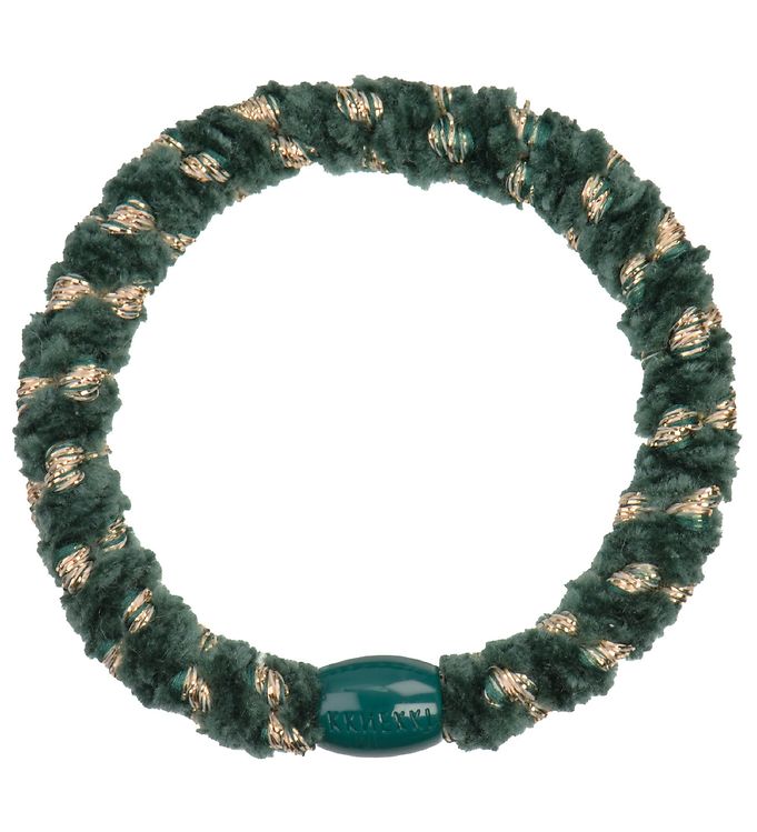 Kknekki Hårelastik - Grøn/Guld Velour m. Glimmer