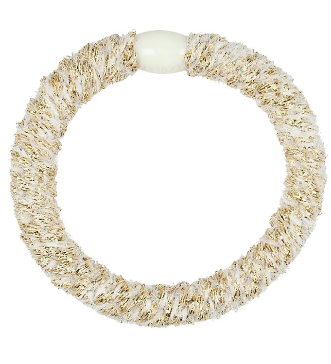 Kknekki Hårelastik - Hvid/Guld Velour m. Glimmer