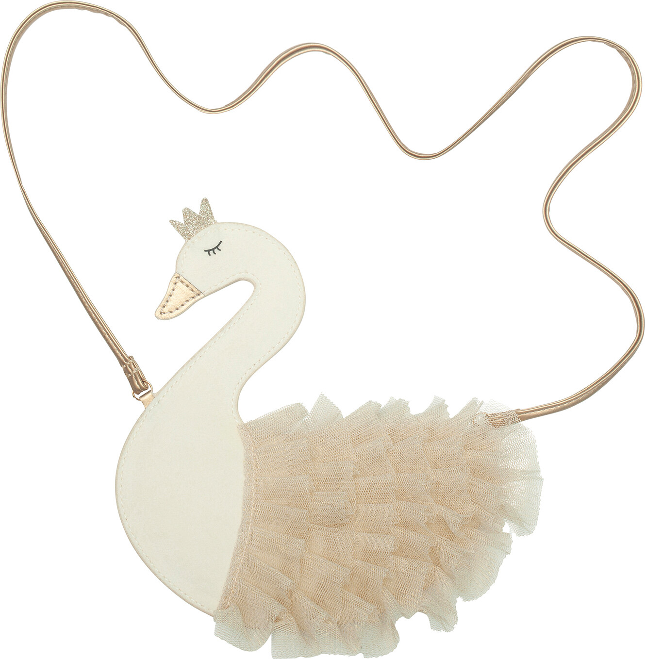 Taske med rem og form som en svane. Svanen er dekoreret med lille royal krone og en fjerdragt af...