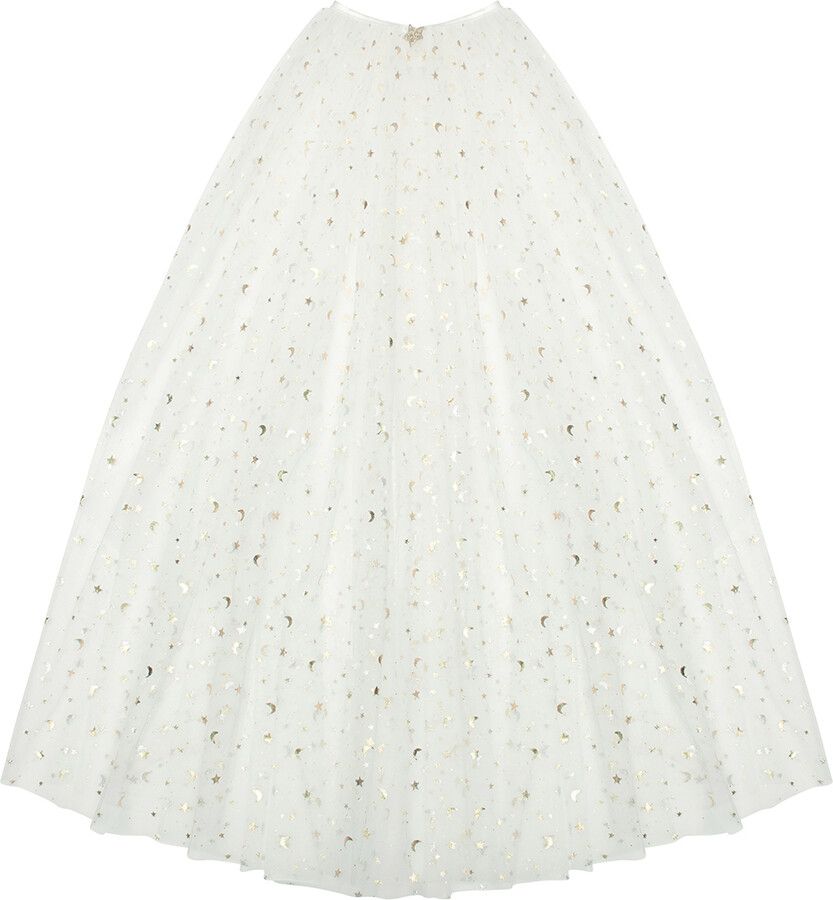 Lang, hvid tylkappe med små guldfarvede måner og stjerner. Alder: 3-8 år