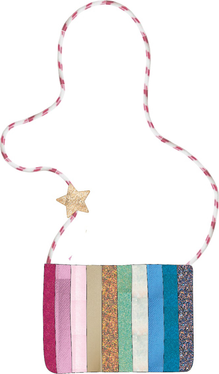 Rektangulær taske med mangefarvede striber og en glitrende stjerne på remmen.Alder: 3-8 år