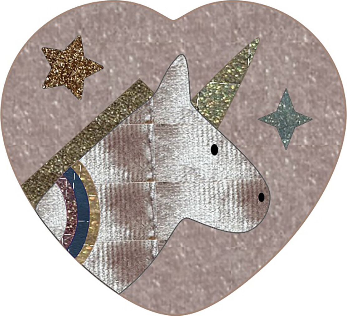 Hjerteformet spejl med dekoration af enhjørning og stjerner på bagsiden.Alder: 3-8 år