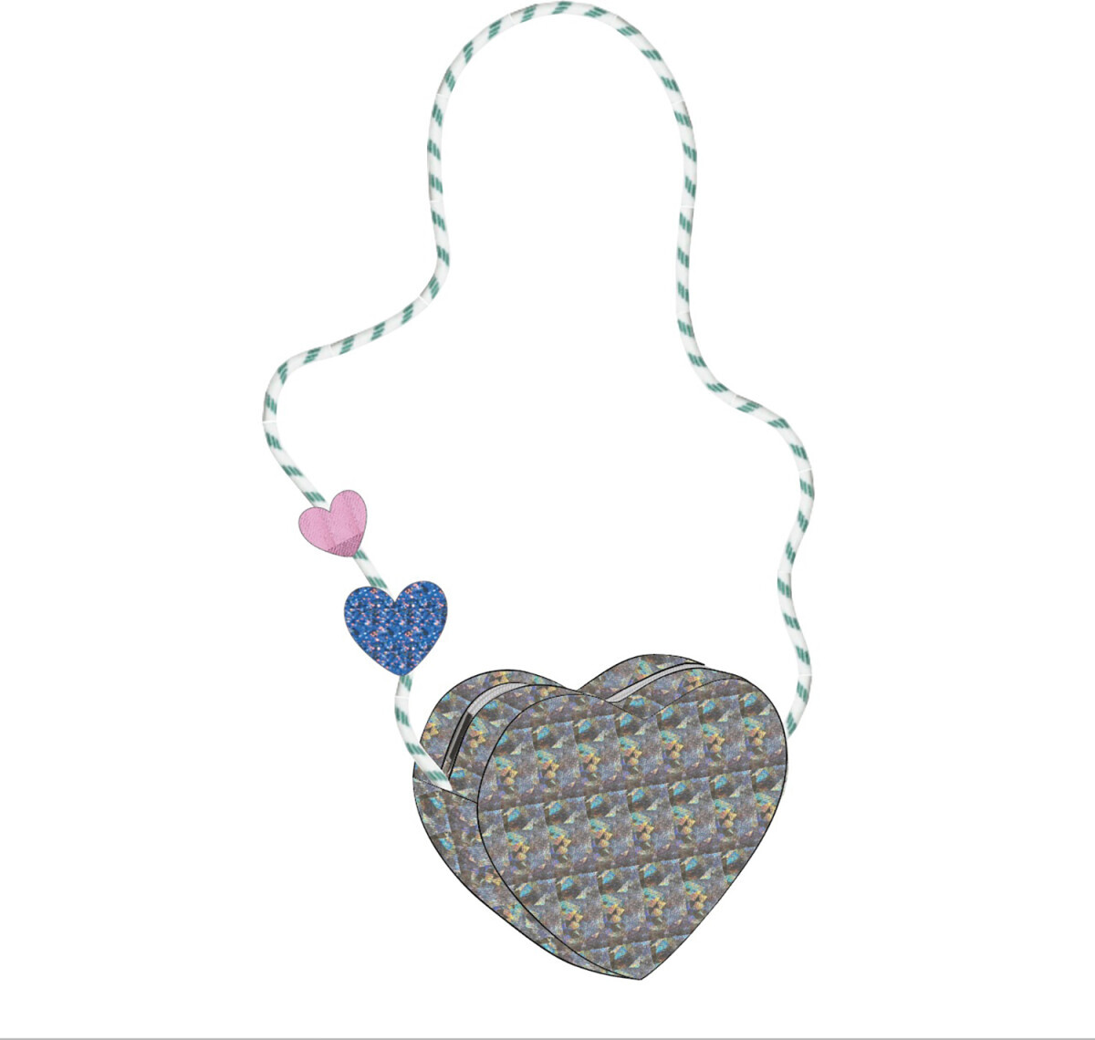Hjerteformet taske med et funklende mønster og en glitrende stjerne på den stribede rem. 1 rum og...