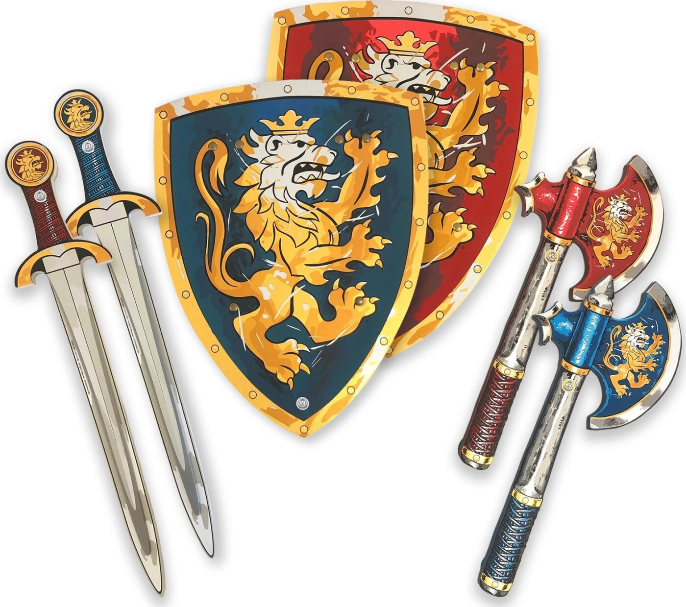 Giv dit barn en uforglemmelig legeoplevelse med Shield Noble Knight sæt til 2, der inkluderer både sværd og økser i de klassiske farver blå og rød. Dette sæt er designet til at stimulere fantasien og opfordre til aktiv leg, hvor børn kan træde ind i en verden af ridderlige eventyr.