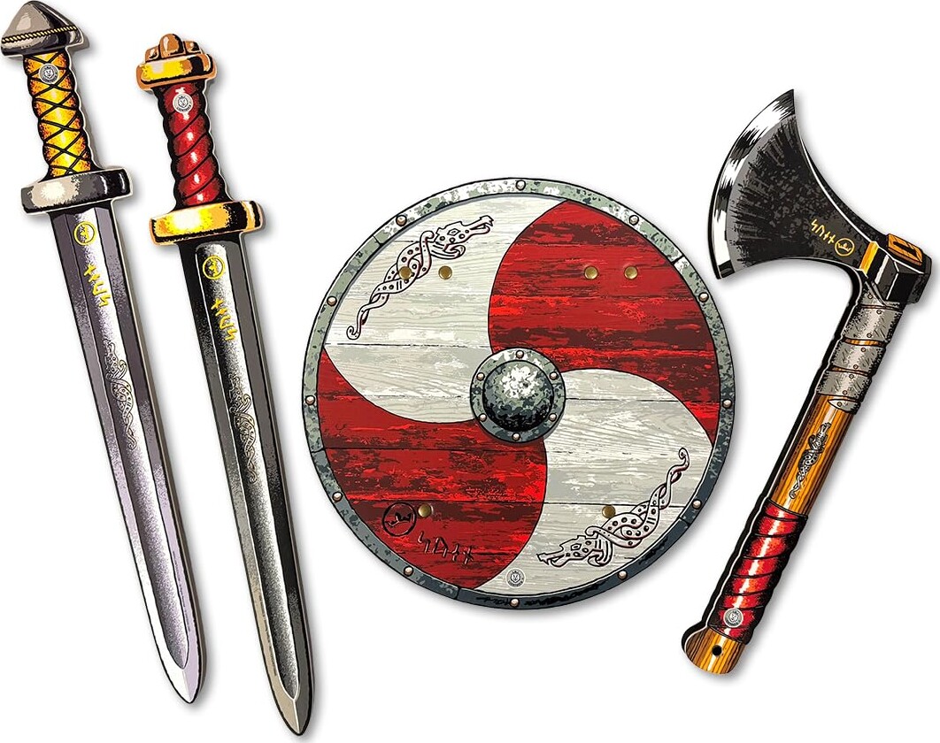 Træd ind i den storslåede verden af vikinger med dette fantastiske Shield Sven Viking Set. Sættet inkluderer to imponerende sværd og en kraftfuld økse, der er designet til at bringe det vikingetidens ære og styrke til live. Hvert våben er omhyggeligt håndlavet med fokus på kvalitet og detaljer, hvilket gør dem til perfekte samlerobjekter og uundgåelige dele af dit rollespil.