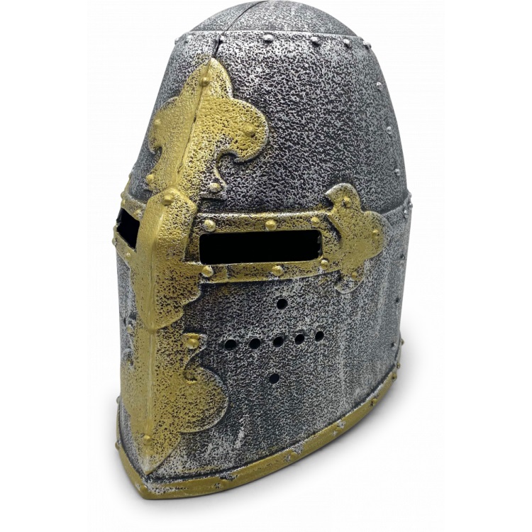 Hjelmen har en ru sølvoverflade og udsmykkede gyldne dekorationer, der giver den et slående udseende. Sigtespalterne i hjelmen er designet til at give et autentisk synsfelt og få børn til at føle, at de faktisk befinder sig i middelalderen. Takket være de