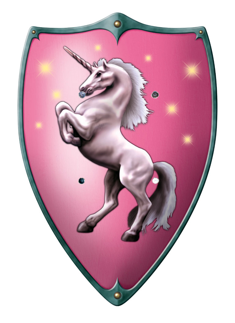 Enhjørningen siges at være et magisk dyr, så måske har dette skjold tilhørt en troldmand eller en kvinde. Det er ihvertfald robust, og smukt. Så tag med til rollespil, og kæmp med eller mod elvere, orker og hvad du ellers møder på vej til den livsvigtige