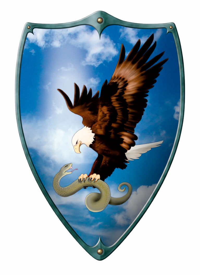 Dette smukke våbenskjold, skildre den kamp der skal ske i skoven imorgen. Det bliver en lige kamp, så det er vigtigt at have udstyret iorden. Skjoldet beskytter dig mod slag fra div. våben, så du måske slipper igennem linjerne, og hen til modstandernes fl