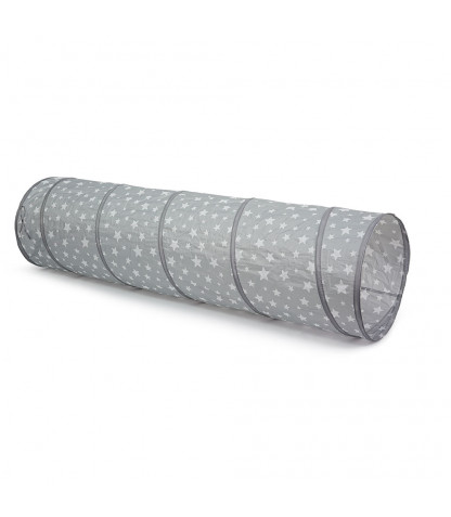 Kuk, kuk, er du derinde?Skøn legetunnel, som børnene elsker at kravle rundt i, gemme sig i, trille rundt i. Skab et herligt legerum i stuen med tunnellen og sofapuderne - det giver sved på panden og masser af herlig motorisk træning for de små kroppe. Tunnellen er grå med stjerner på, og den kan nemt trilles sammen og lægges væk.Fremstillet af 100% polyester.