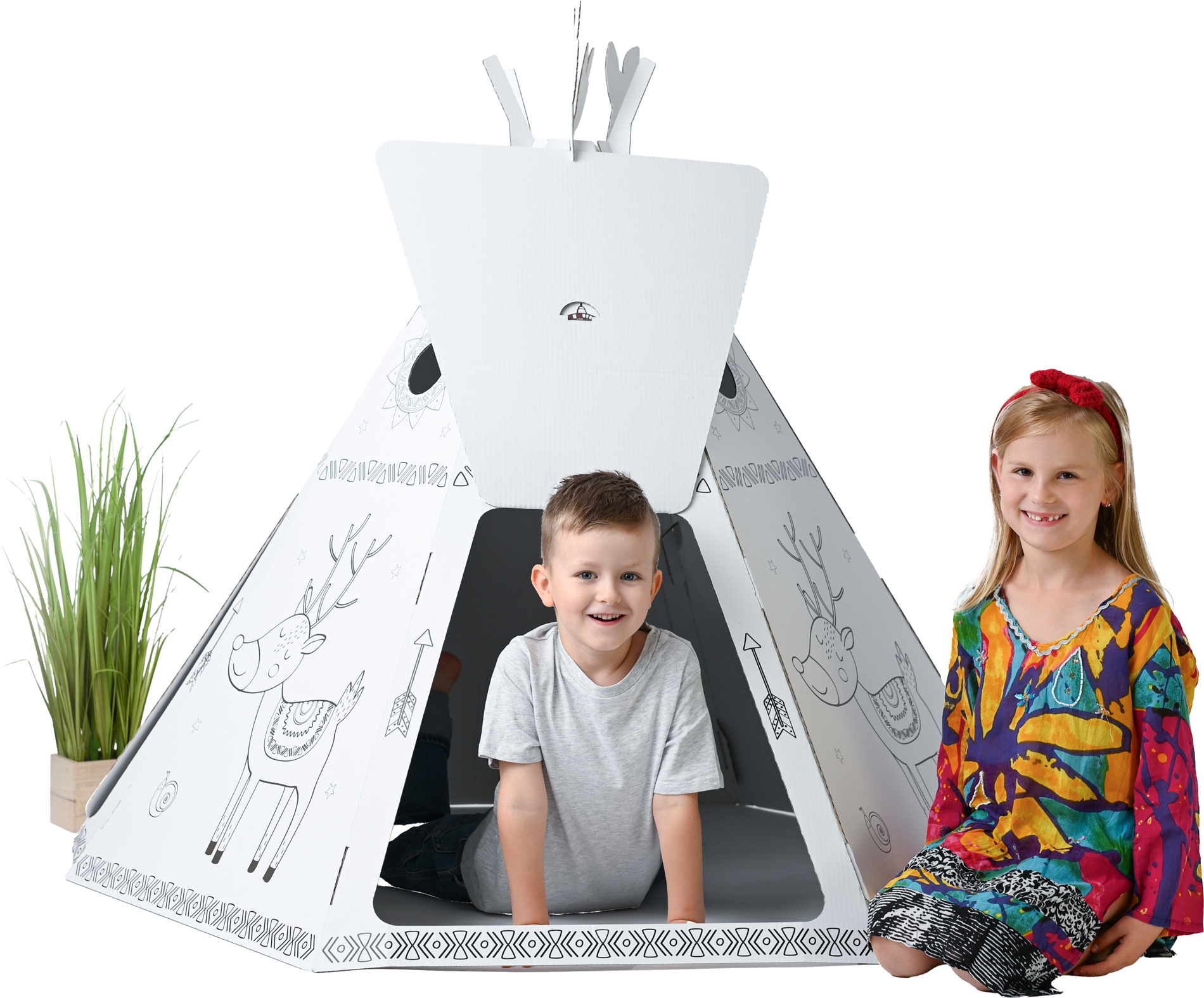Foldbar farvelægningstipi lavet af hvidt, 3-lags bølgepap. Pakkens indhold: 1farvelægnings- og legetipi Fortrykte motiver Nem og hurtig samling uden brug af lim eller saks Har ingen skarpe kanter Pap huset er stabilt og let, og kan efter afsluttet leg kla