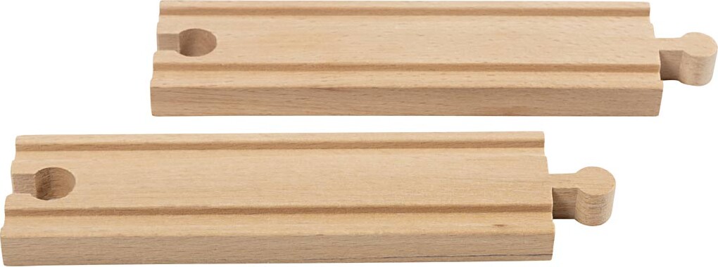 Robuste togskinner af træ i forskellige længder, der kan sættes sammen til en togbane. Kompatible...