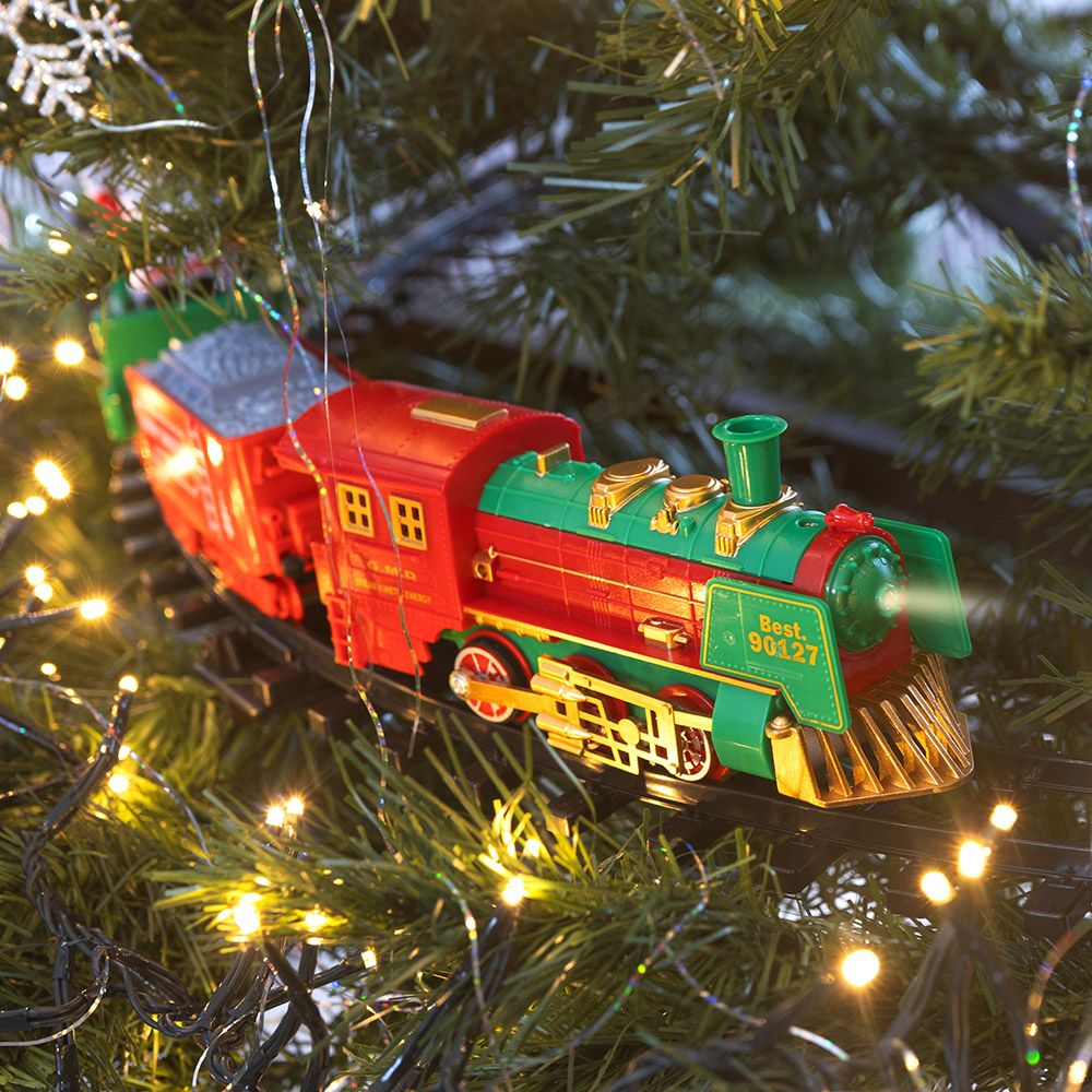 Giv dit juletrę liv med dette batteridrevne togsęt, komplet med LED-lys og lyde. Kan monteres omkring tręet eller på gulvet. Skinnernes stųrrelse: 89 cm x 89 cm.