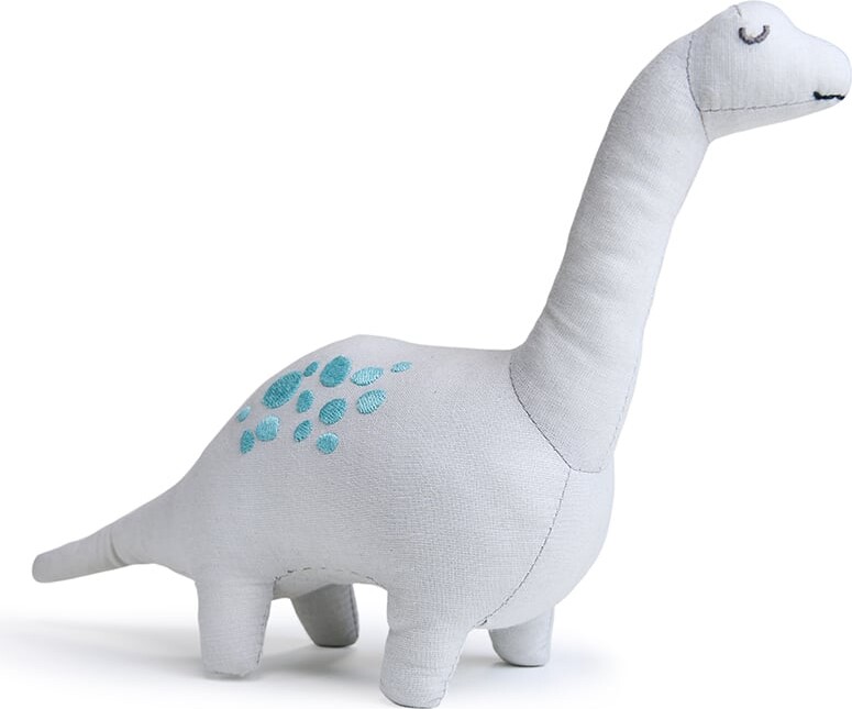 Et fredfyldt brontosaurus legetøj lavet af gråt bomuld og hør af høj kvalitet med broderede træk. Dinoen er en perfekt gave til børn, færdiggjort i naturlige hørstoffer af højeste kvalitet....