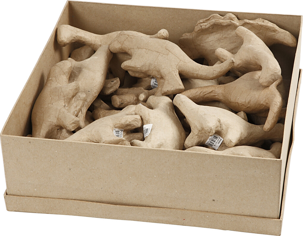 Dinosaur Figurer - Mal Selv - Papmaché - 21 Stk