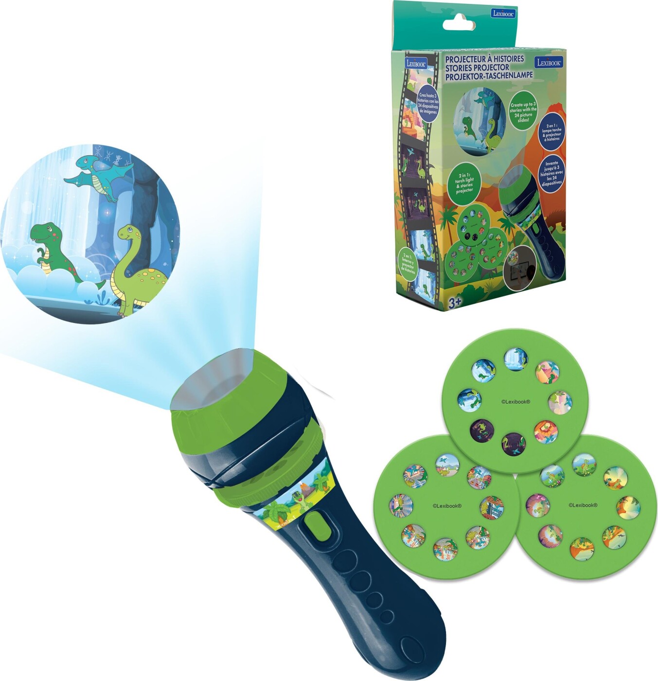 Med Lexibook Dinosaur Stories Projector & Torch Light kan dit barn opleve en forhistorisk verden lige i deres eget hjem. Denne spændende projektor forvandler ethvert værelse til en jura-tidens...