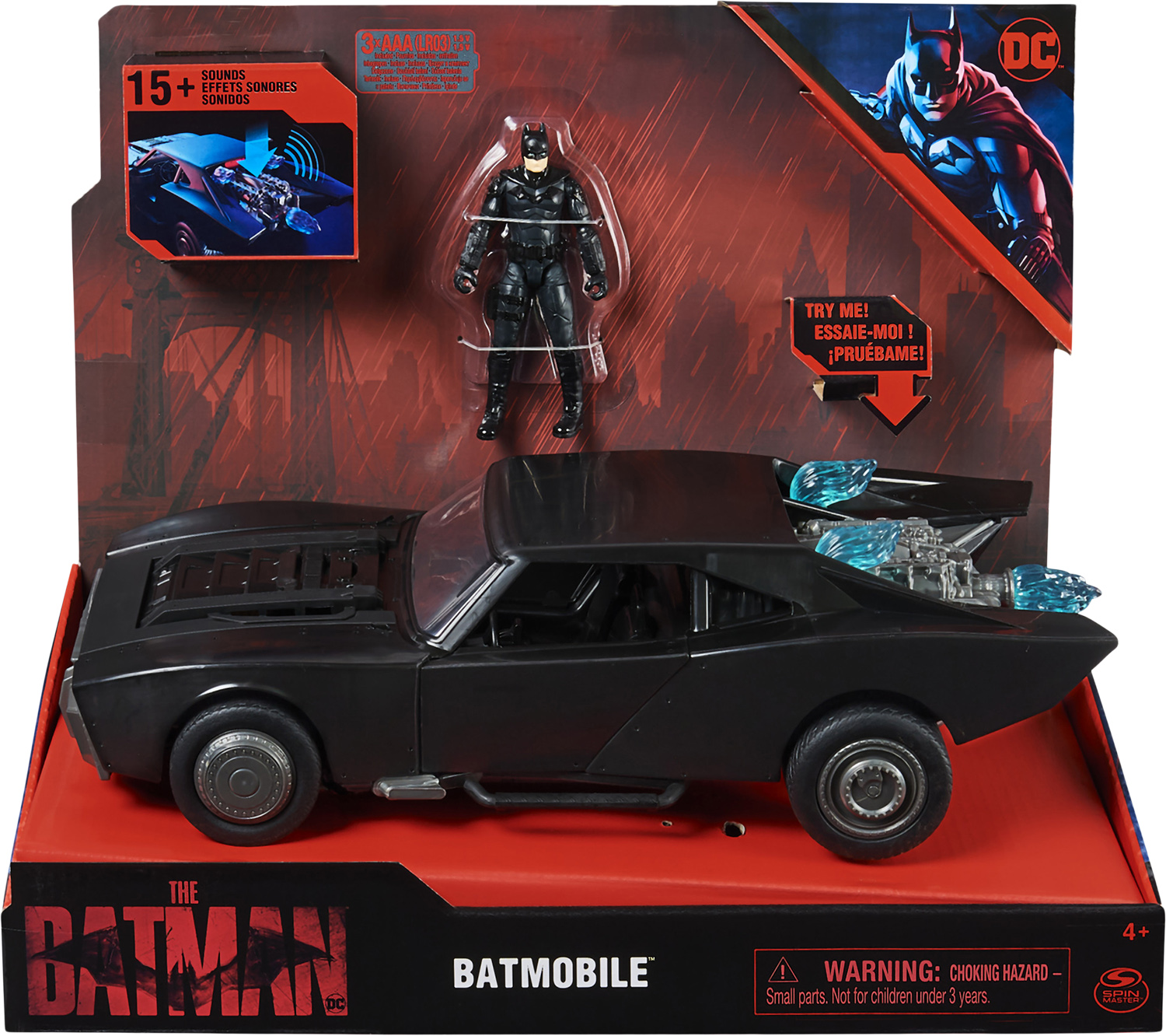 Ræs ind i film-action med Batman Movie - Batmobil, der er autentisk udformet som i filmen og har mere end 15 lydeffekter og LED-lys, der vil bringe dine Batman-eventyr direkte ind i virkeligheden Skab episke Batman-eventyr med den medfølgende 10 cm Batman