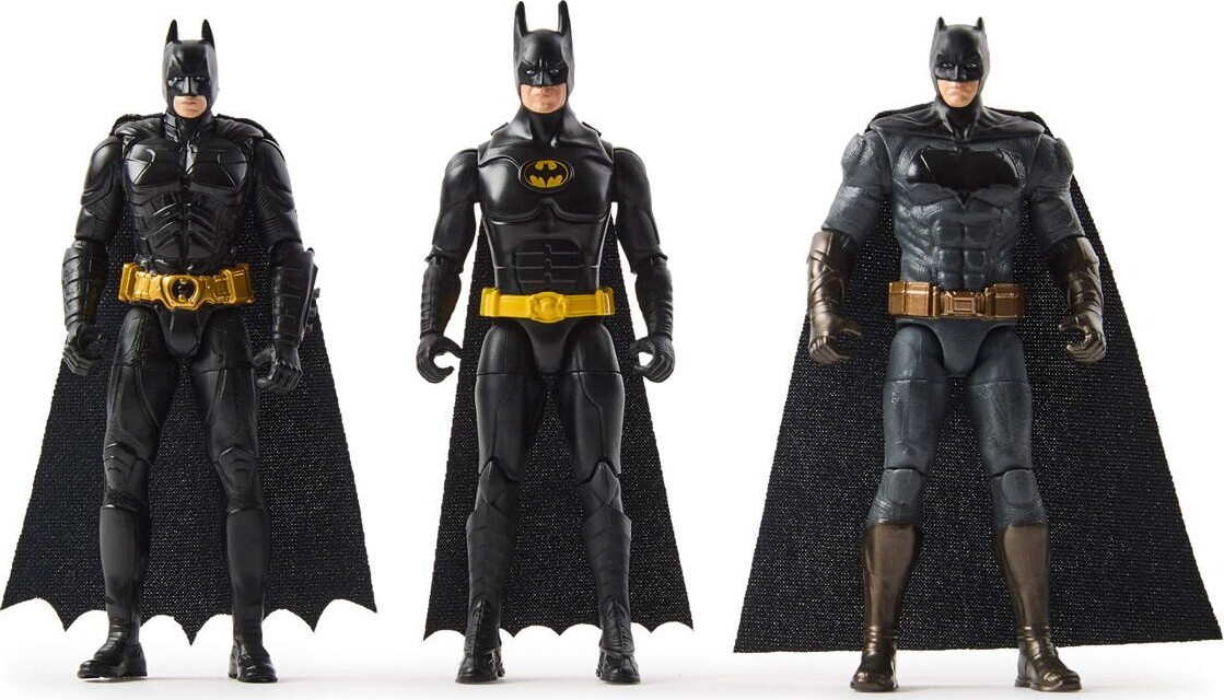 3-Pack Special Edition Batman Action Figurer, der fejrer 85 år med Dark Knight. Dette eksklusive sæt indeholder tre 10 cm figurer fra ikoniske Batman-film Batman Returns, The Dark Knight og...