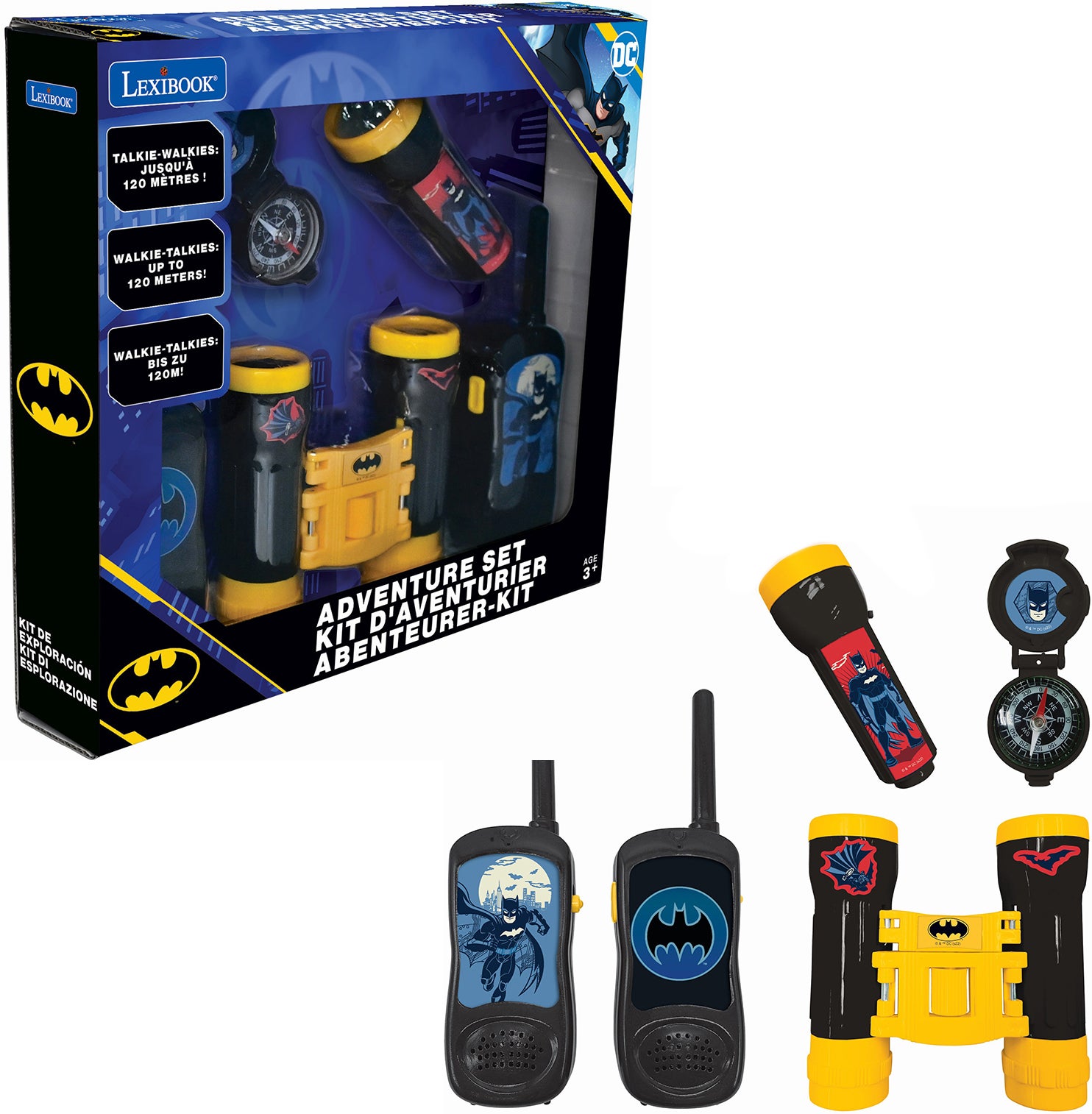 Spionsæt fra Batman med masser af spændende tilbehør. Det har en lommelygte, så man kan lege både dag og nat og kikkert, så man kan se rigtig langt. Spionsættet har et legetøjskompas og walkie talkies med en rækkevidde på op til 120 meter. Perfekt som gave til den lille spion. - Walkie-talkier med en rækkevidde på op til 120 m. - Lommelygte. - Inkl. kikkert og legetøjskompas. - CE-mærket. - Anbefalet alder: Fra 5 år. - Batteri: 8 x AAA (medfølger ikke).