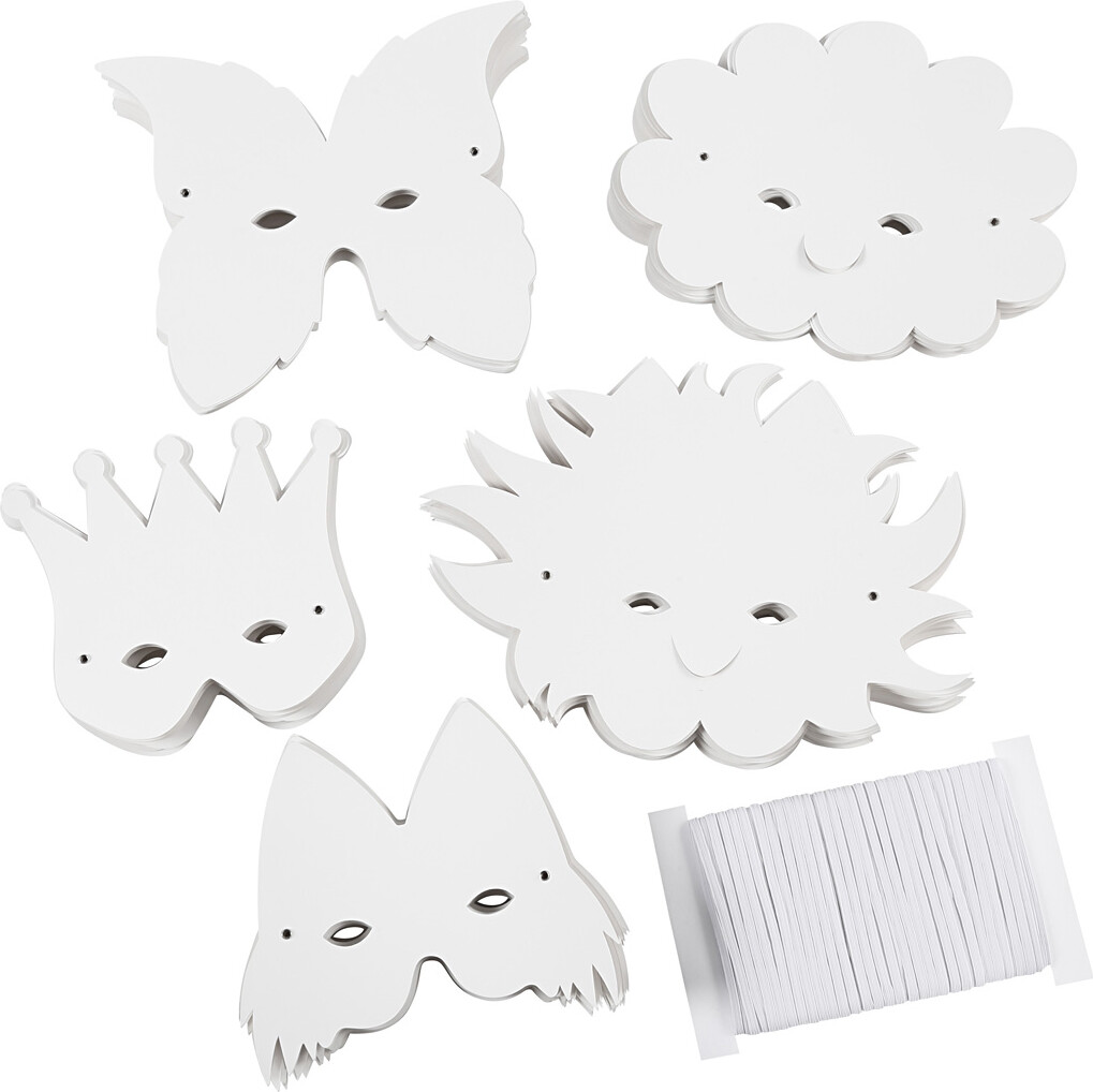 Slip kreativiteten løs med dette gør-det-selv maske-sæt! Sættet indeholder hele 100 udstansede papmasker med 5 forskellige eventyrlige designs. De medfølgende elastikker gør maskerne dejligt...