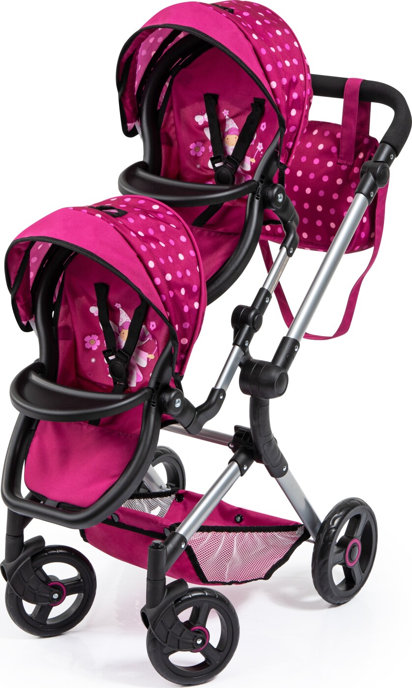 Uanset om du skal på en kort tur til parken eller en længere udflugt, vil Bayer Tvillinge Klapvogn Neo i pink være din perfekte ledsager. Den er både stilfuld og praktisk, så du og dine tvillinger kan nyde hver eneste tur.