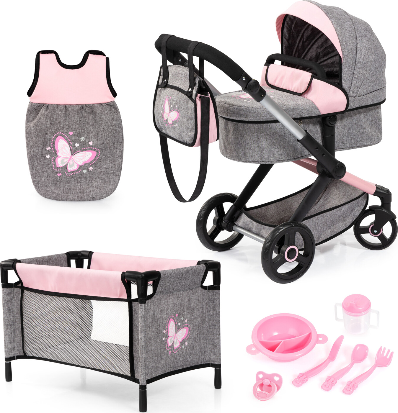 Bayer - Dukkevogn Mega Sæt - Xeo - Grå Og Pink