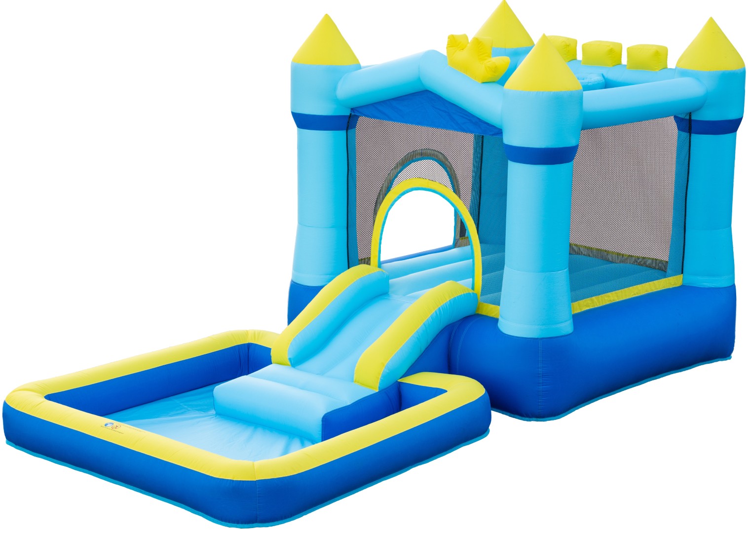 Oppusteligt Hoppeborg Slot med Rutsjebane og Boldbassin Gør haven til et magisk kongerige med denne farverige oppustelige hoppeborg med rutsjebane! Med sine flotte tårne, boldbassin og basketballkurv bliver det hurtigt børnenes yndlingssted til leg og bev