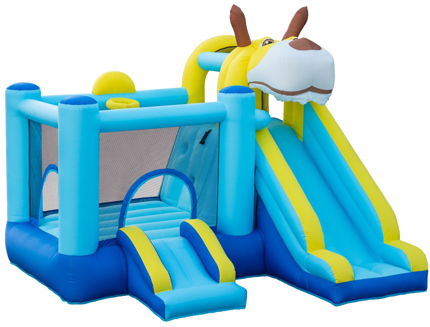 Lad børnenes fantasi flyve med vores farverige hoppeborg 'Hund'. Denne oppustelige legeplads er designet til at give timevis af sjov og aktivitet med både rutsjebane og basketballkurv. Det store hundeansigt på toppen tilføjer et ekstra element af sjov, der vil bringe smil frem hos alle børn.