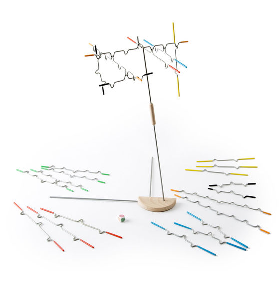 SuspendHvor mange pinde kan du få til at balancere? Et perfekt, underholdende og sjovt familiespil, der kræver en fast hånd og nerver af stål.Spillet går ud på at kunne balancere så mange metalpinde på stativet som muligt. Lyder det enkelt? Det er det ikke!Alle metalpinde har små buer flere steder, så det skulle være let at hænge dem op på stativet og/eller hinanden. Metalpindene er desuden beklædt med gummi i forskellige farver ude på spidsen, så man kan holde styr på sine egne pinde og samtidig ikke river sig på spidserne.Step 1 er at sætte stativet op. Dernæst er det bare at begynde at spille/hænge metalpindene op. Del metalpindede imellem jer, så I har lige mange. Den som først er færdig med at hænge sine pinde op - vinder.Spillets regler- Du må kun bruge en hånd, hår du hænger metalpindende op. Hvis du bruger to hænder eller du kommer til at røre ved de andre pinde på stativet, mister du retten til at hænge din pind op og må vente til næste omgang.- Så snart du har sluppet pinden, er det den næste spillers tur.- Du må hænge metalpindende op hvor du vil, dog ikke de steder, hvor der allerede hænger en pind.- Hvis du får andre pinde til at falde af, må du lægge dem i din egen bunke og hænge dem op påny.Med dette spil kommer du til at arbejde med din tålmodighed og en sikker og rolig hånd. Vejledningen til spillet er på engelsk.