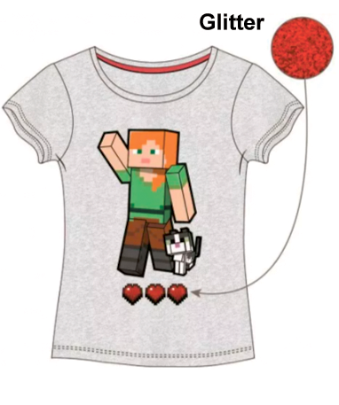 Minecraft grå t-shirt til piger med glitter (4-8 år)