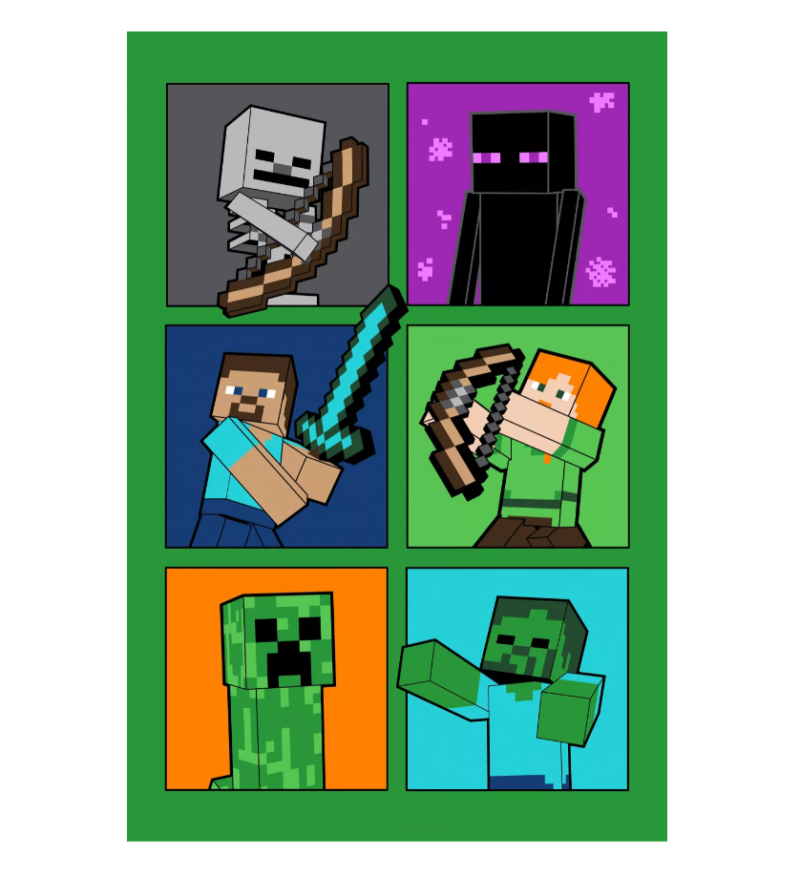 Vi pręsenterer Minecraft-tęppet! Dette hyggelige og farverige tęppe er perfekt til enhver fan af det populęre spil. Med en stųrrelse på 100x150 cm er det stort nok til at holde dig varm på kųlige nętter eller gųre det til en fantastisk tilfųjelse til dit