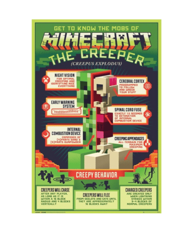 Minecraft plakat med creeper anatomi - 61 x 91cm