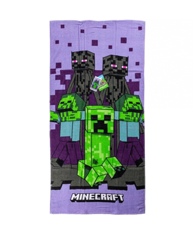 Klar til Eventyr? Er dit barn vild med Minecraft? Forestil dig glæden, når dit barn ser dette lilla Minecraft håndklæde efter en svømmetur eller et bad. De kantede, pixellerede former, der minder om en lilla byggeblok, og de mørkere nuancer, der skaber d