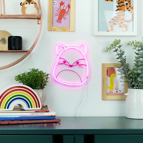 Fifi Neon Væglampe fra Squishmallows er den perfekte tilføjelse til ethvert børneværelse eller stue, der ønsker et strejf af sjov og farve. Denne væglampe i en livlig pink nuance giver et blødt og indbydende lys, som skaber en hyggelig atmosfære. Den er designet i form af den elskede Squishmallows karakterskikkelse, hvilket gør den til en unik dekoration, der vil glæde både børn og voksne. Fifi's søde ansigt og farverige design bringer liv til væggene og kan nemt integreres i forskellige indretningsstile. Lampen er ikke kun funktionel, men også et fantastisk statement piece, der kan bruges som en dekorativ genstand i rummet. Med sin bløde belysning er den ideel til at skabe en rolig stemning, når det er tid til at slappe af eller læse en god bog. Uanset om du skal bruge den som natlampe eller som en sjov lyskilte til at lyse op i rummet, vil Fifi Neon Væglampe være en favorit blandt alle. Giv dit hjem et personligt præg med denne fantastiske lampe, der både er praktisk og stilfuld. Forvandl dit rum til et magisk sted med Fifi fra Squishmallows!