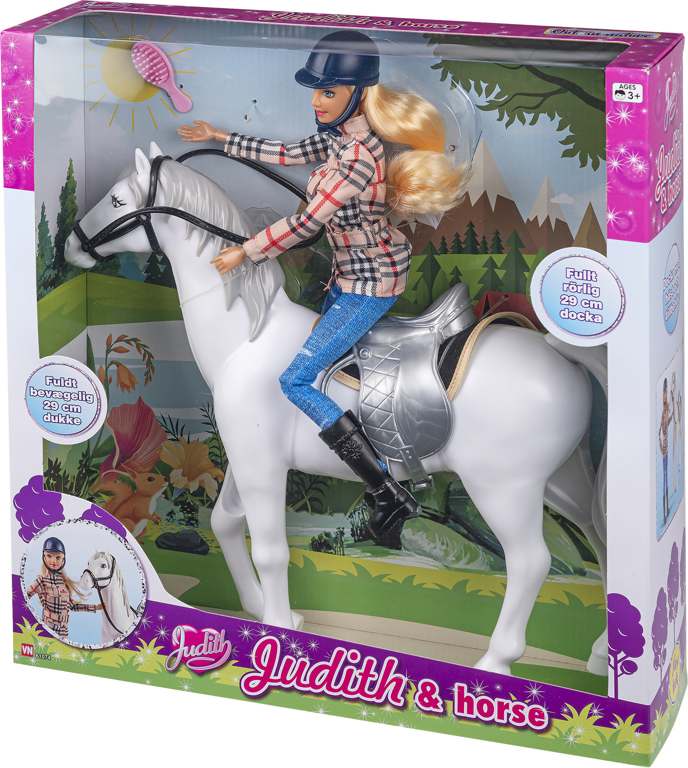 Judith med hest Inkl fuldt bevægelig dukke og tilbehør