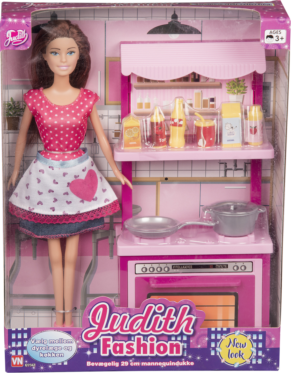 Judith dyrlęge- eller kųkkensęt Med dyrlęgetilbehųr og hundehvalp eller kųkken med tilbehųr Inkl Judith mannequindukke
